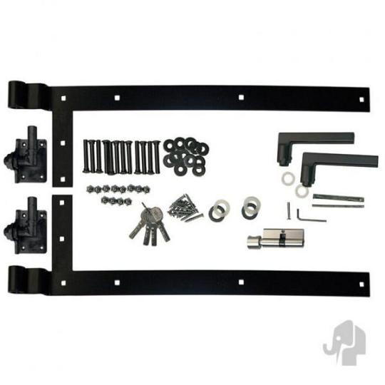 Elephant beslagset antraciet tbv Forte tuindeur hengen, duimen, deurkrukken, cilinderslot
